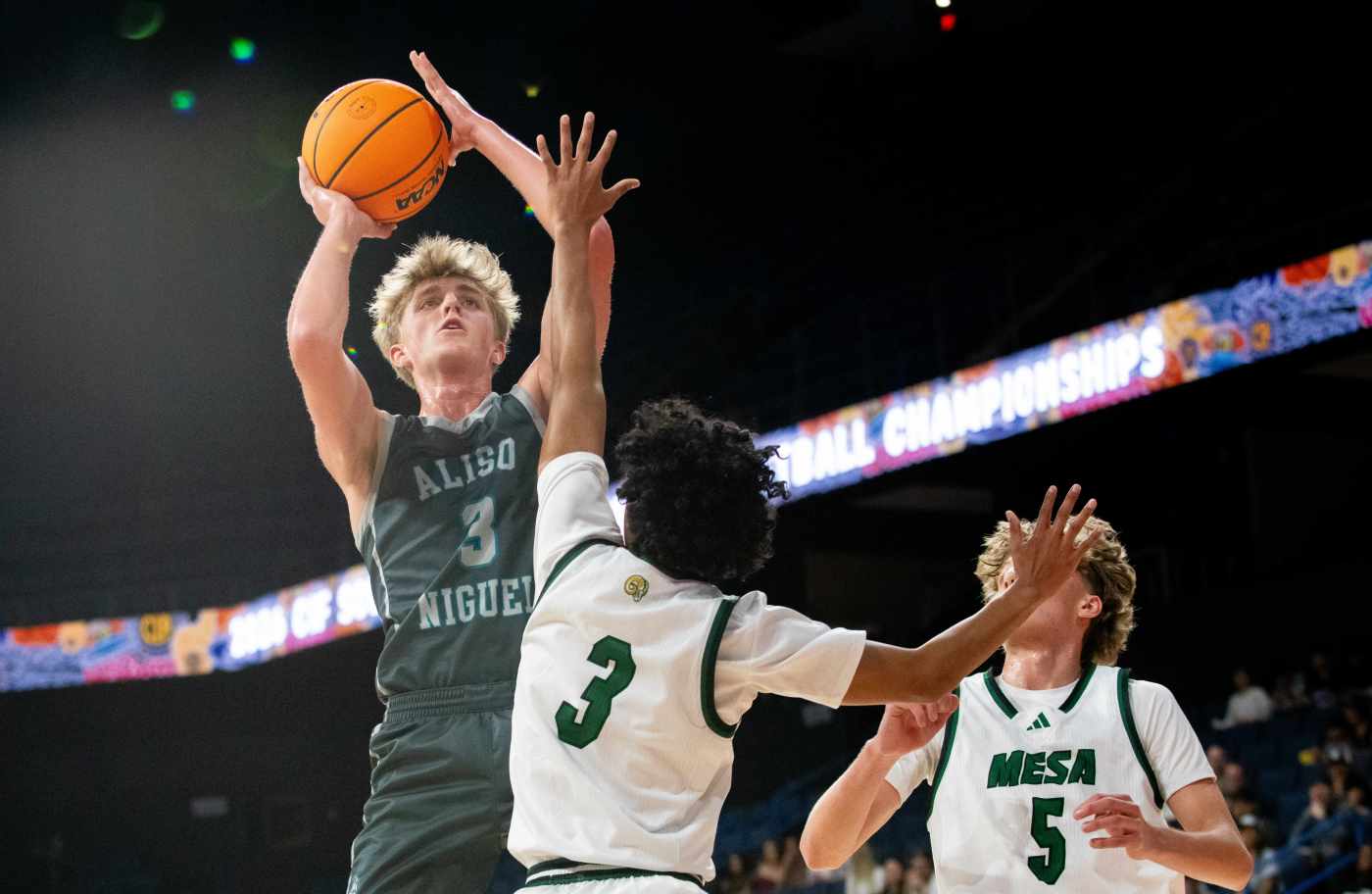 Aliso Niguel senior guard Jayden Mysin, the team’s leader all season, scored 18 points with two 3-point shots and six rebounds in the Wolverines’ 65-58 loss to Murrieta Mesa in the Division 3 final. Then there is Trabuco Hills senior guard Devon Williams who scored 13 points, the only Mustang to score in double figures, while shooting 6 for 8 from the floor with a team-high nine rebounds in a 51-44 loss to Colony in the Division 4 final.