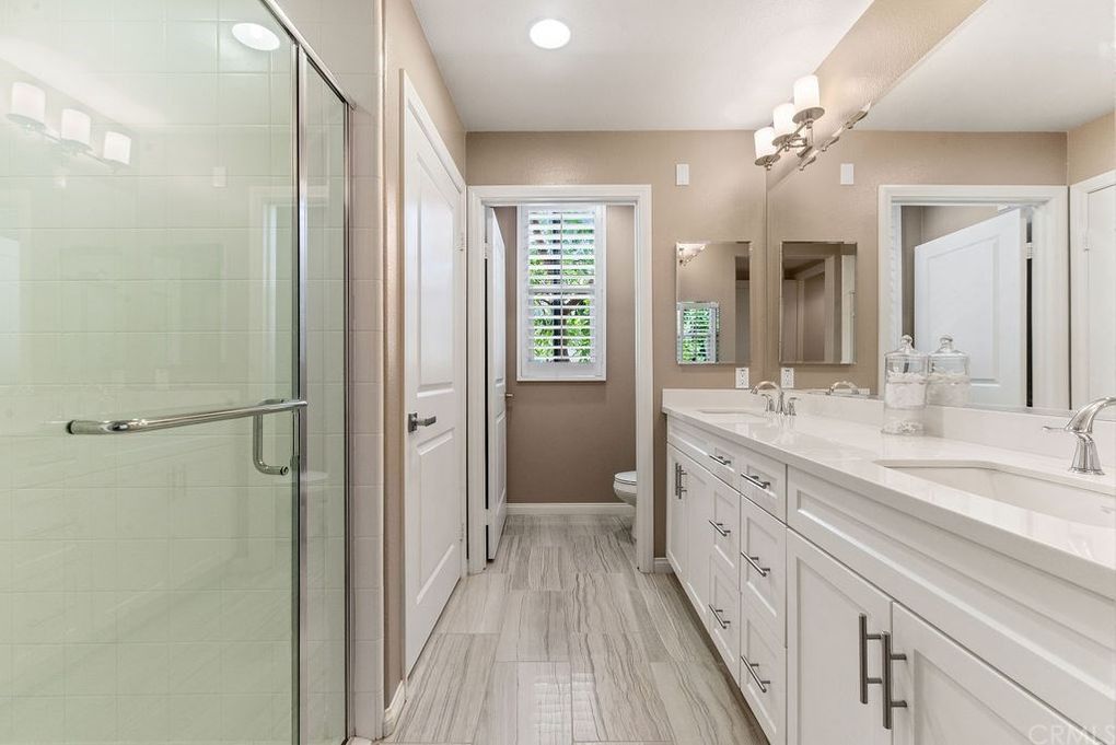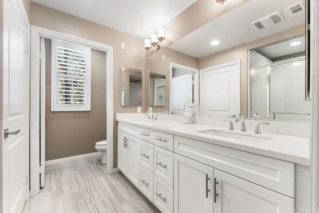 Premium corner unit offering desirable one-level living in Irvine’s highly sought-after Portola Springs community. This ground-level residence features an open floor plan with high ceilings and abundant natural light, creating a bright, welcoming atmosphere throughout. Meticulously maintained and truly model-like, the home showcases tasteful upgrades and thoughtful design at every turn. The interior features designer flooring, recessed lighting, custom window treatments, and ceiling-height cabinetry that provides exceptional storage. The chef’s kitchen is beautifully appointed and opens seamlessly to the main living area, making it ideal for both everyday living and entertaining. The spacious primary suite includes a walk-in closet and an en suite bath with a walk-in shower, while the secondary bathroom offers a generous soaking tub. A separate laundry room features custom cabinetry and direct access to the two-car tandem garage. Enjoy indoor-outdoor living with a landscaped private patio, perfect for relaxing or entertaining. Ideally located just moments from resort-style amenities including heated pools and spas, walking and biking trails, playgrounds, basketball and tennis courts, expansive green spaces, and award-winning schools such as Portola Elementary, Jeffrey Trail, and Portola High.